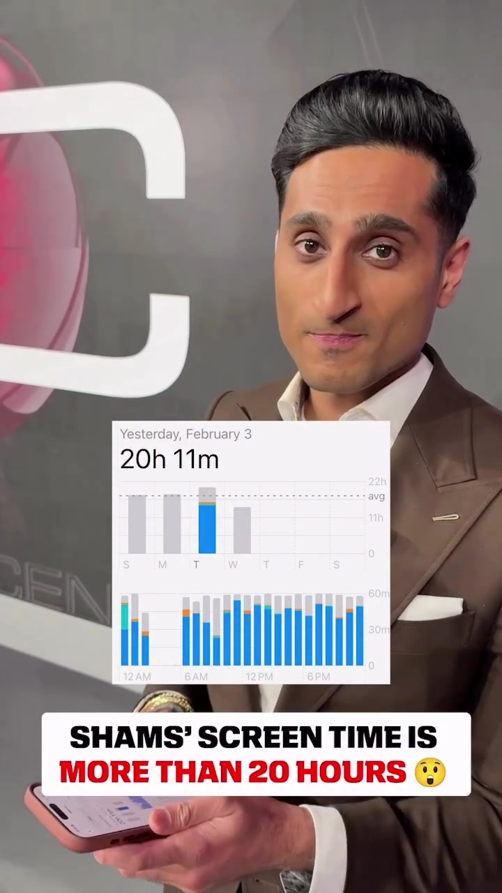 03月 04 2026 0 高强度工作!Shams一天内手机屏幕使用时间高达20个小时11分钟 xiaoqiao 2026-03-04 意甲 64 02月06日讯 名记Shams在自己的社媒晒出动态展示了自己在交易截止日前一天的屏幕使用时间,高达20个小时11分钟。在被问到这是否是自己的屏幕使用时间纪录时,Shams表示自己可以使用得更多。