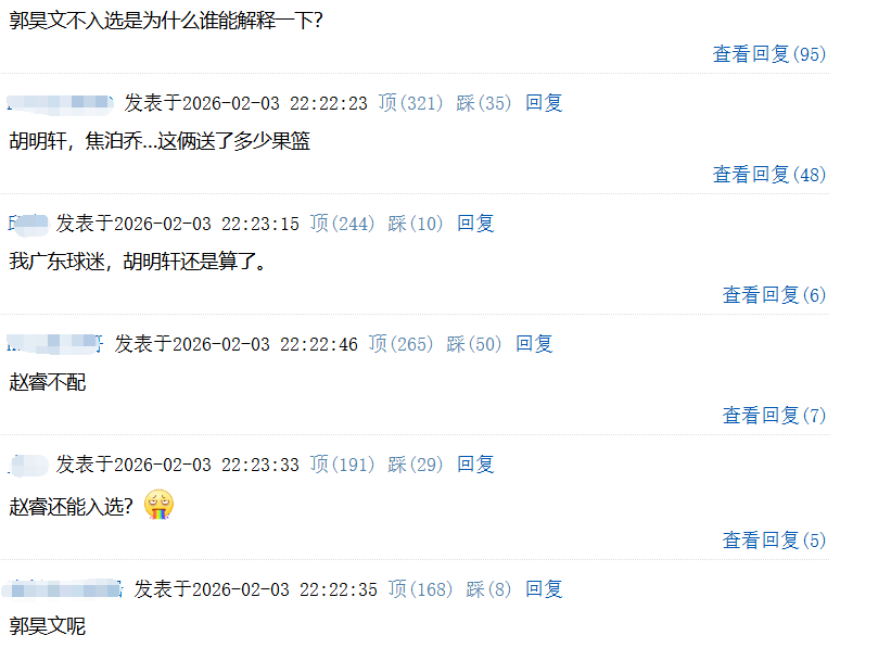 赛后球迷们评论区议论最多的话题有3个,争议最大的第一个问题,郭昊文怎么没有入选?第二个问题,赵睿怎么还能进?第三个,是周琦为何这次也落选了?